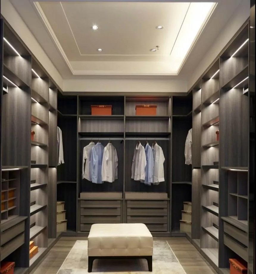 整体定制衣柜可以结合客户实际情况和喜好进行设计安装,满足用户对衣柜的花色、造型、功能等方面的需求,方便家居物品分类存放。如果卧室面积大,可设计一个步入式衣帽间,衣帽间的储物功能更加强大,最大限度的满足了户主的收纳需求。