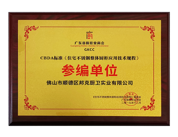 cq9电子厨卫获CBDA《住宅不锈钢整体厨柜应用技术规程》参编单位授牌!