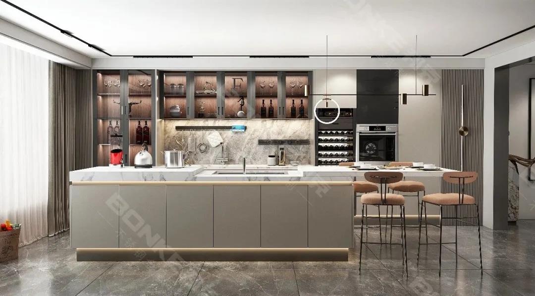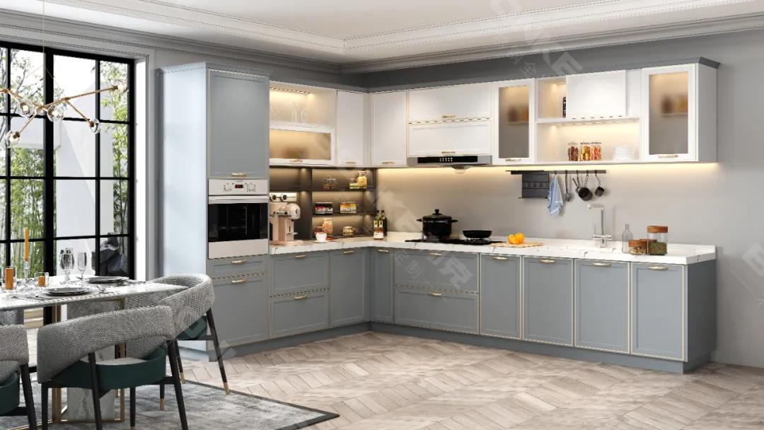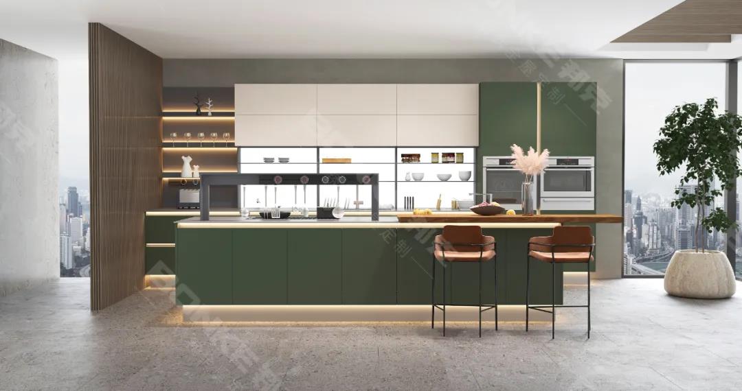 人们越来越喜欢多变的、有趣味的、尊重个人意愿的空间,自然、流畅的线与强调空间的几何形,以极强的可塑性征服了人们,厨柜简洁明快的魅力一览无余,使得空间层次分明,充满浓厚的艺术意味。 原野之森 大面积的墨绿与米色、星空灰相遇,给人童话般的视觉感受,在生机盎然的厨房之间邂逅森林,感受旷野间的自由与森意,一日三餐,享尽烟火温情。