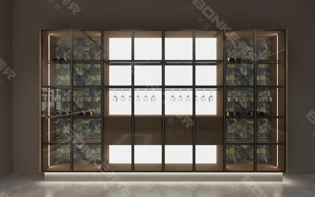爱马仕橙是酒柜典雅尊贵的底色,星空灰中和了橙色的跳脱,将美酒杯盏罗列排布,追求品质的同时不忘实用,让生活充满仪式感。