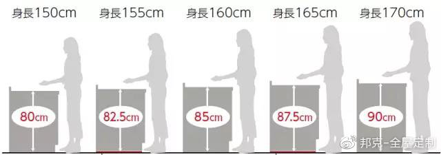 如果常用经常下厨的人身高不是1.6米,那么大家可以参考以下的高度: