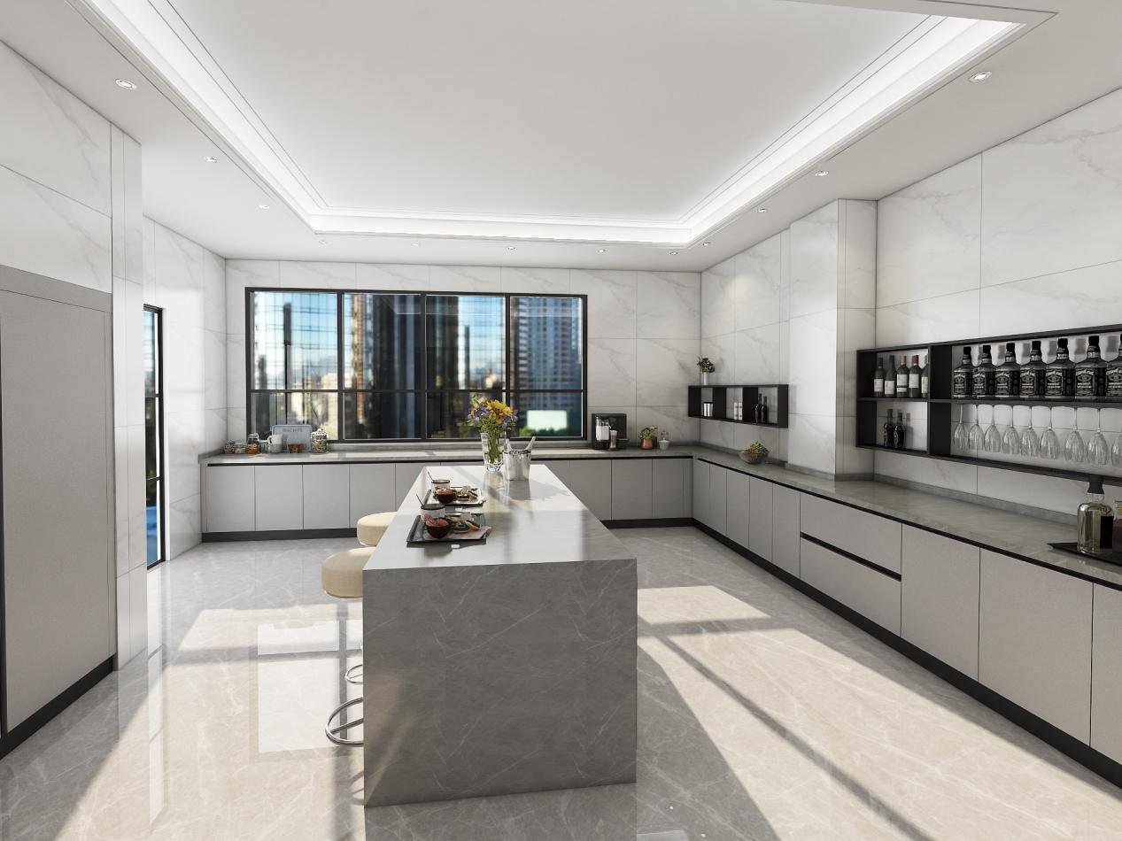 “性冷淡风”在一定程度上可以理解为极简风,因此,从硬装到软装都不需要太复杂,像常见的装饰画、贴纸等饰品都无需刻意装饰,只需流畅简约、设计感强烈的厨柜设计,就可以给人带来简约高级的感觉。