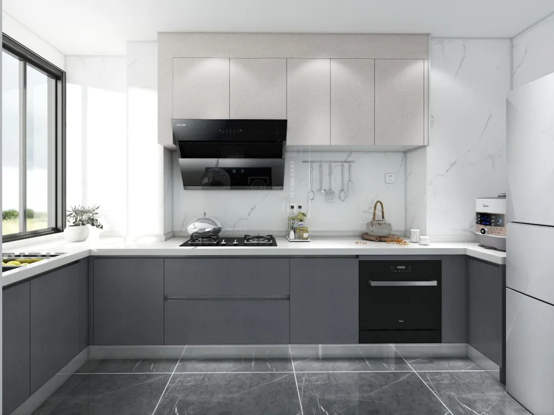 让家中尽量显得简洁、干净,做到顶的厨柜可以提供帮助,足够多的柜子和收纳空间,合理分布的拉篮和柜体,足以将厨具、调料、杯盘碗碟等物品一网打尽,让空间更显整洁、干净,免除杂物堆积的困扰。