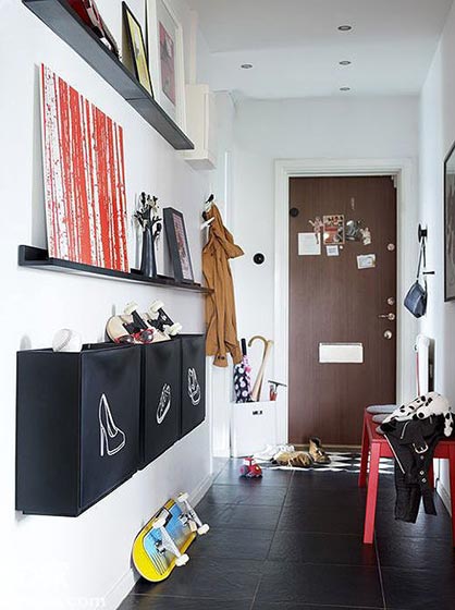 在玄关处定制一套柜子,或是放置一个小鞋柜都是不错的解决方案,不仅能解决入户写字乱放的问题,像是钥匙、雨伞和包包等物品也能随手放置。