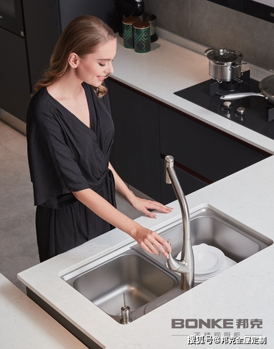 水槽为使用频率最高的厨房机能,因此,其防水性能也须更加讲究,水槽柜底建议以防水铝板施作,加强防水效果。