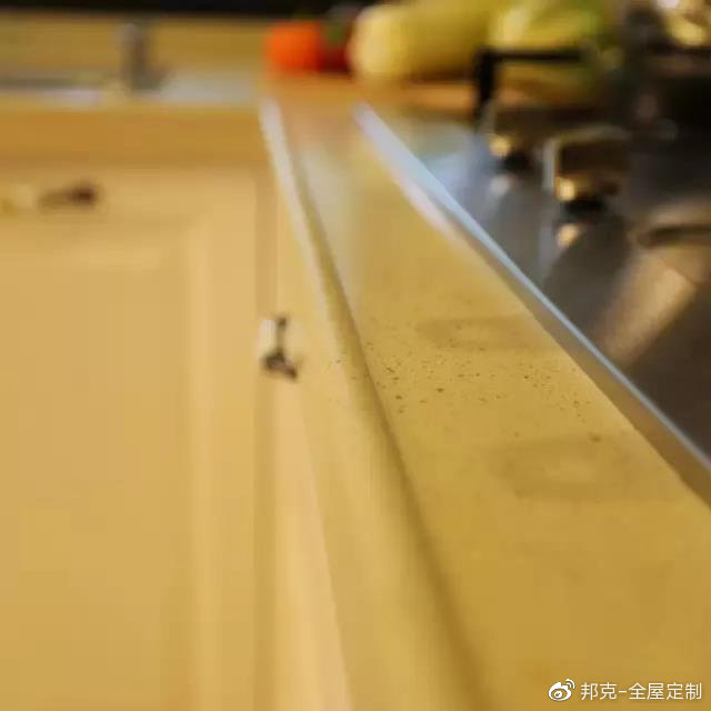 厨房台面是最容易潮湿、积水的地方,一不小心就会流到地面上,不仅难清理而且容易打滑。所以安装橱柜的桌面的时候,要注意防水。如下图边沿挡水线,下部止水线, 都要有,这样小小的一条挡水线,能让你日后操作的时候省时省力,不装后悔值达100%!